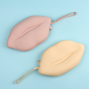 Borsa per il trucco cosmetico con cerniera in Silicone a forma di labbra di nuovo Design per organizzare borse da viaggio da toilette con Logo personalizzato